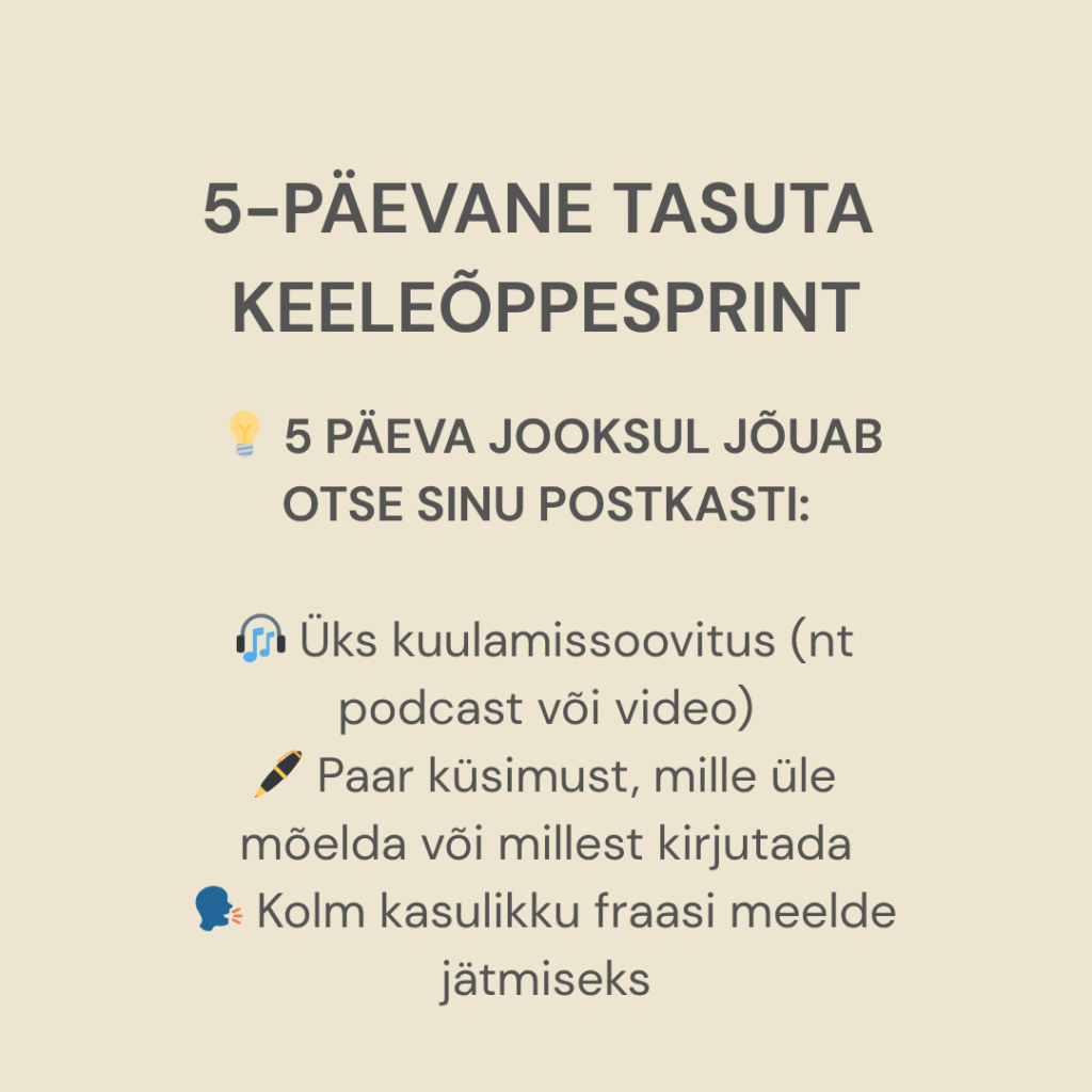Nii nagu reklaam lubab, on kursusel toetav ja sõbralik õhkkond. Minu jaoks oli kõige keerulisem otsustada, kas üldse osaleda (st tulla oma mugavustsoonist välja) või mitte. Edasine oli juba palju lihtsam. Kursus sobib neile, kellele meeldib/sobib kuulata enesearengut toetavaid podcaste ja kuuldu üle arutleda ning selle käigus oma inglise keele oskust arendada. Ja neile, kes podcastide maailmast suurt midagi ei tea, on kursus hea võimalus sellega tutvust teha. Kursusel osalemine toetab kindlasti kuulamis- ja vestlemisoskuse arengut. Boonuseks on Marju toetav ja hinnangutevaba suhtumine. Väike grupp võib tunduda ehmatav või ebamugav, aga mida vähem osalejaid, seda suurem võimalus/vajadus igas tunnis aktiivselt osaleda ja seega ka suurem kasutegur. Sellele, kes ei ole kindel, kas kursus võiks talle sobida, soovitan esmalt osaleda lühikursusel. Nüüd, kus kursus on lõppenud, tunnen, et pean õppimist jätkama, et keeleoskus jälle rooste ei läheks ja edasi areneks.